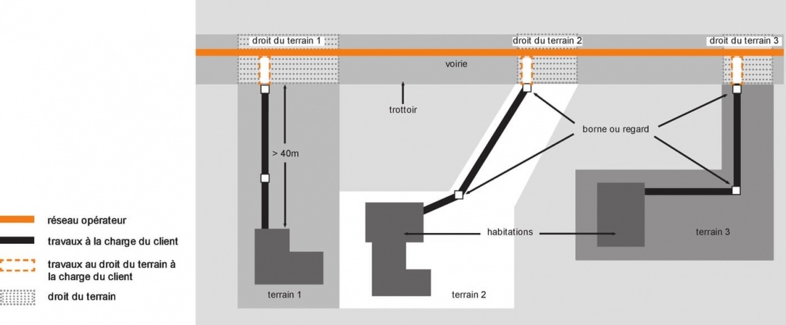 Dans certains cas, des travaux coûteux sur la propriété privée (droit au terrain) peuvent être nécessaires et non pris en charge par l’opérateur.